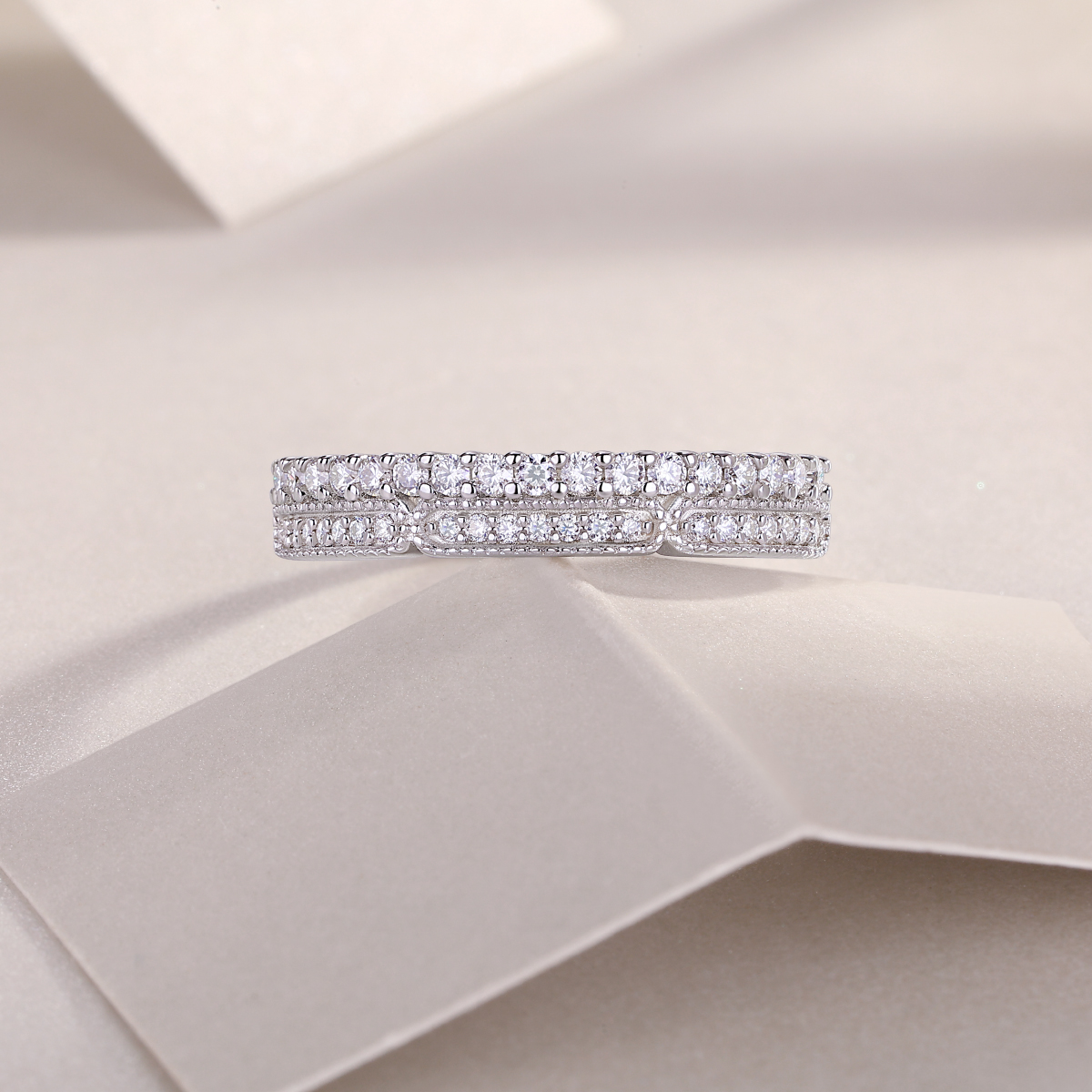 Deep Sea Secret Realm - A Wedding Ring Set With Top-quality Moissanite S925 Silver And Platinum-plated Diamond Can Be Tested With A Diamond Pen