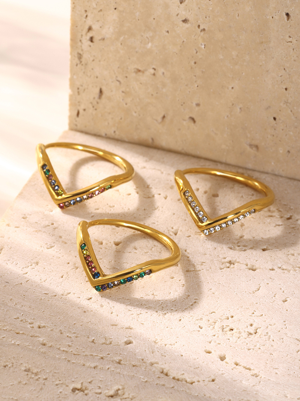 Product information: Color: A984-Gold white zircon ring, A984-Gold pink zircon ring, A984-Gold mixed color zircon ring Size: Adjustable size 7 Material: Stainless steel Shape: Geometric