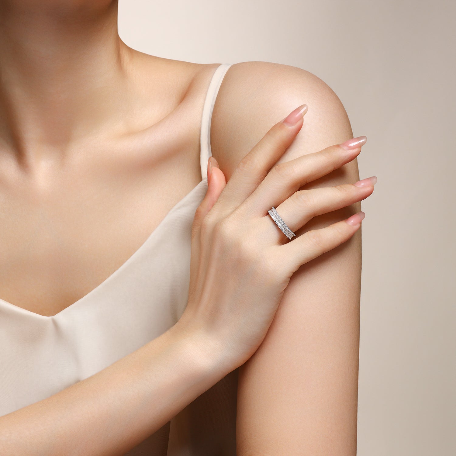 Studded With Stars - A Wedding Ring Set With Top-quality Moissanite S925 Silver And Platinum-plated Diamond. The Ring Can Be Inspected With A Diamond Pen