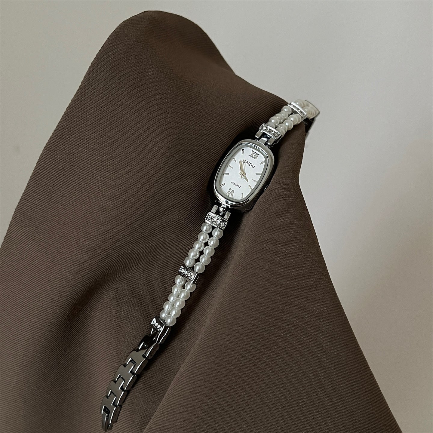 Product information: Color: sliver stripe white surface, sliver stripe black surface, gold grain white surface, gold grain black surface Applicable people: Female Waterproof: no Movement type: Quartz Material: Metal