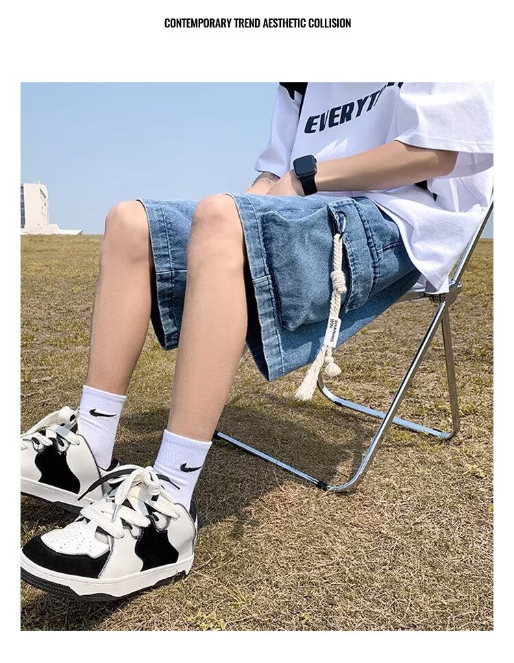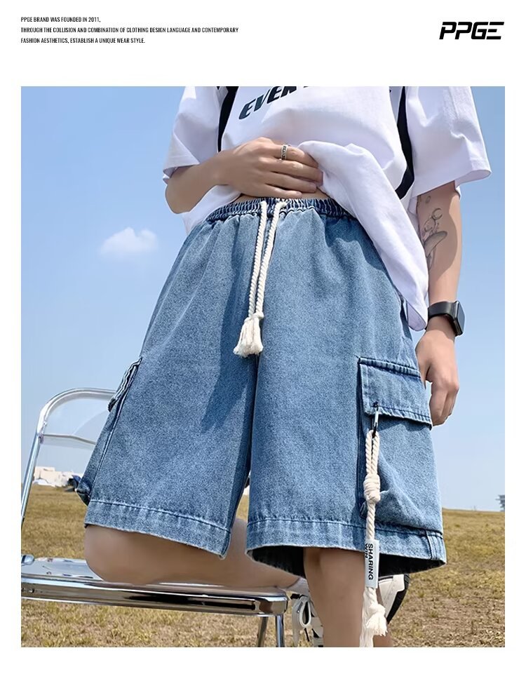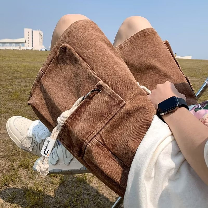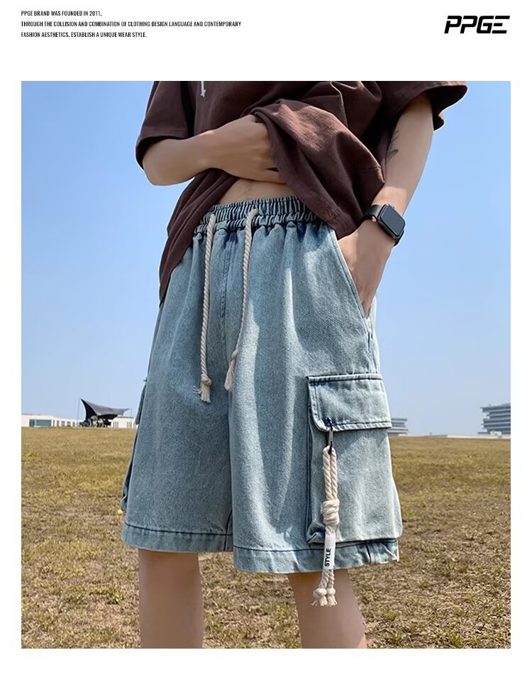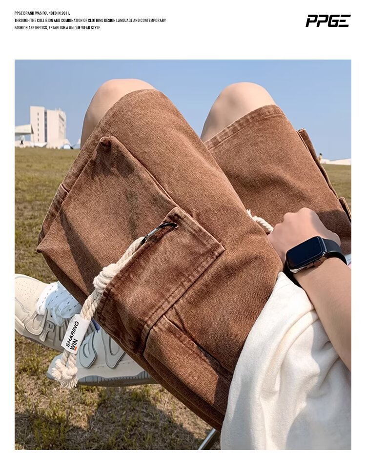 American Retro Workwear Denim Men's Loose Casual Thin Pants
