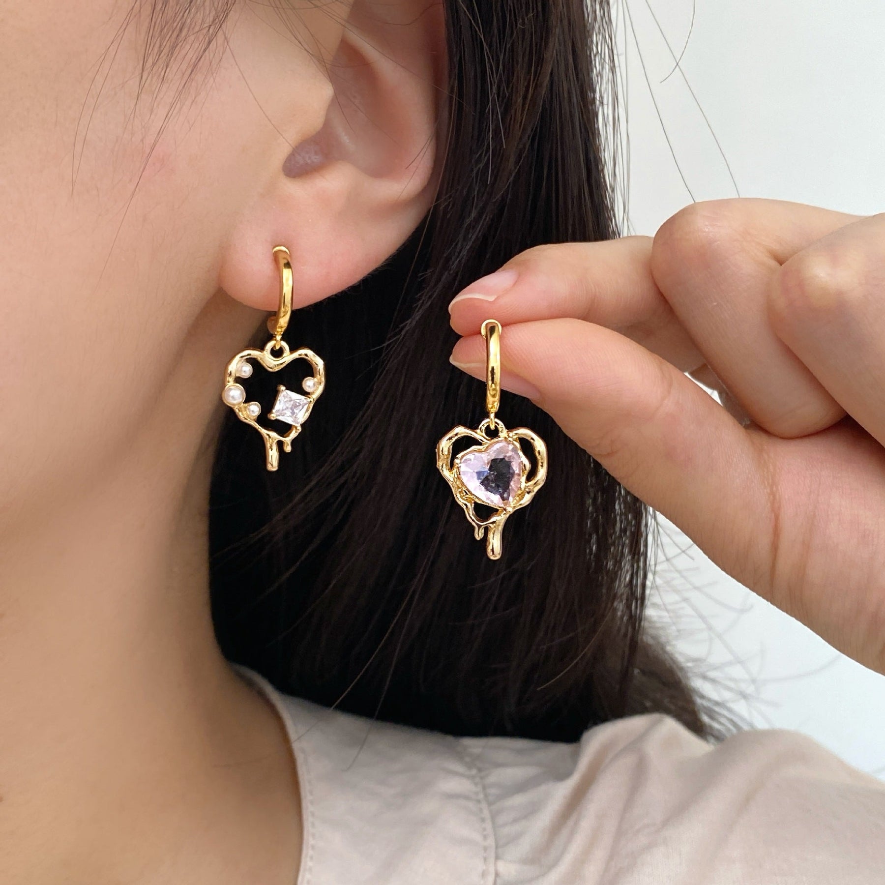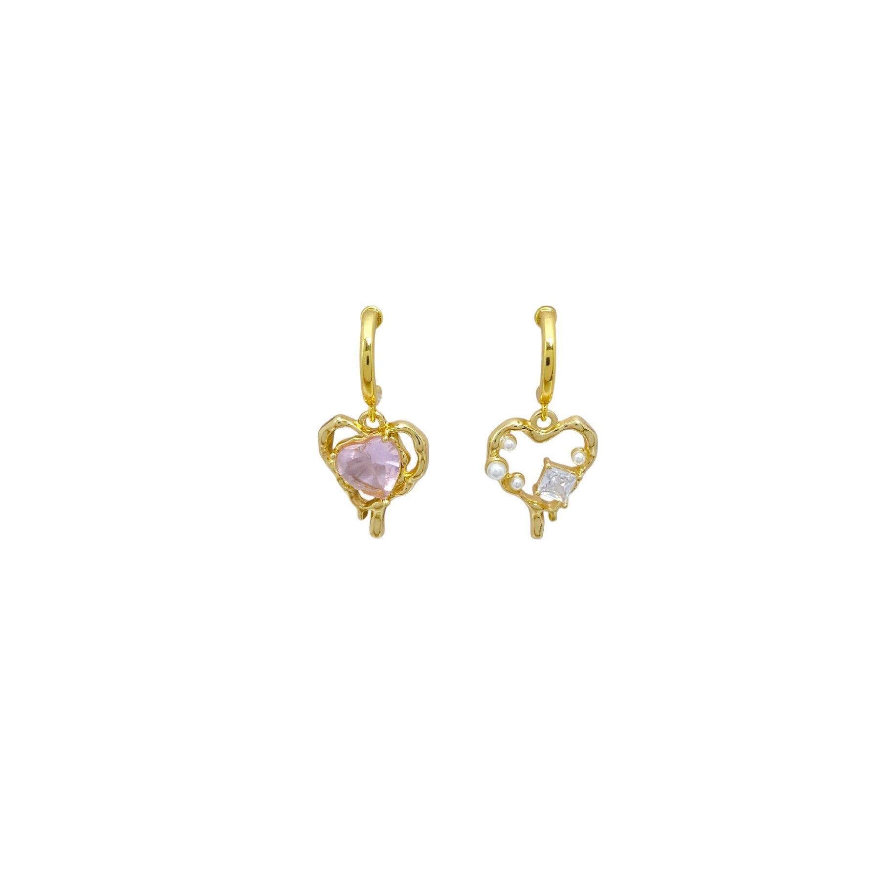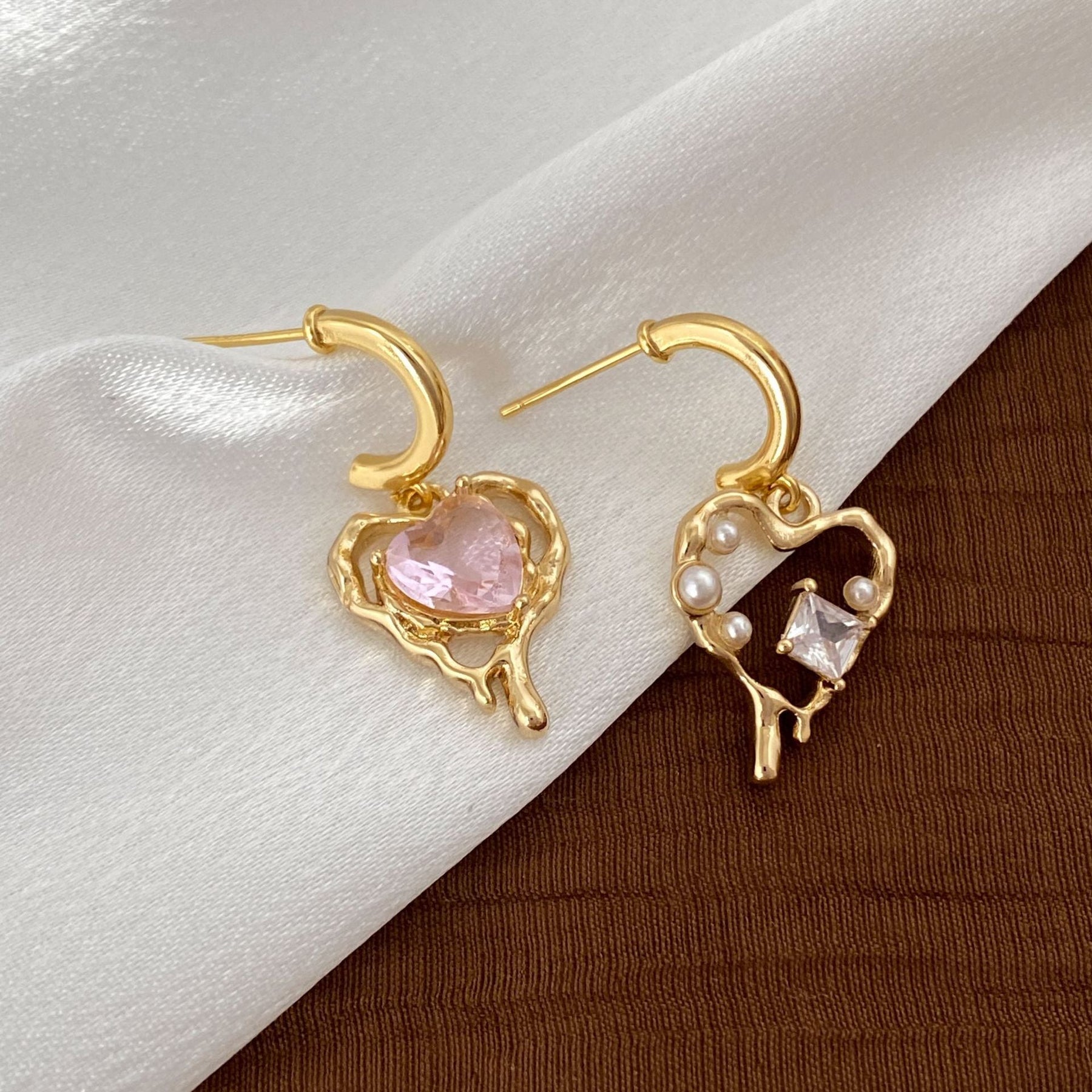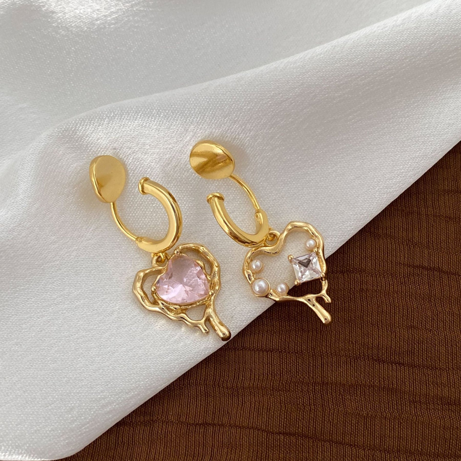 Product information: Processing technology: Inlaid zircon Color: Ear clips/pair, ear studs/pair Applicable people: Women Style: Women Material: Copper Shape: Heart Popular elements: Asymmetrical, love/heart Style: Sweet