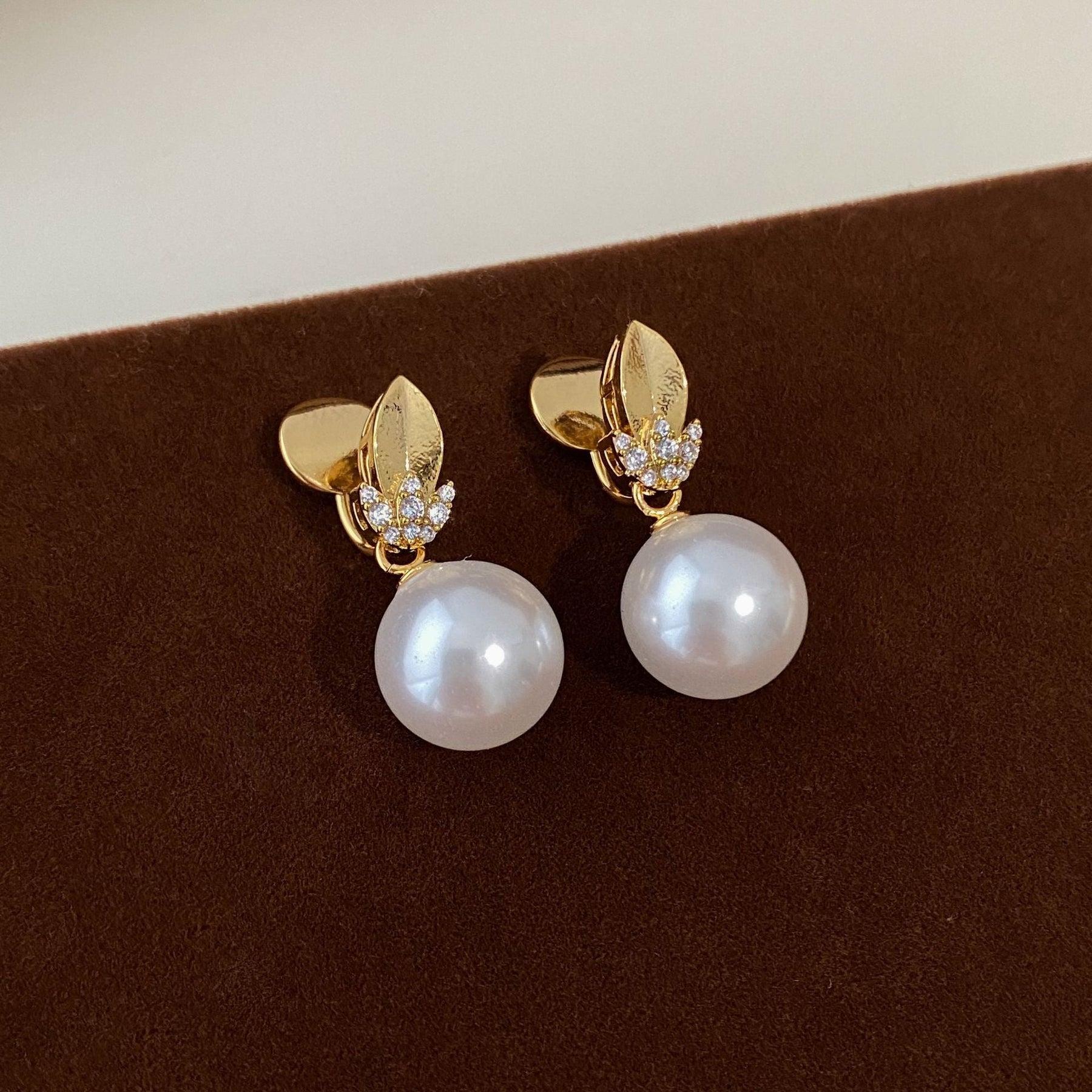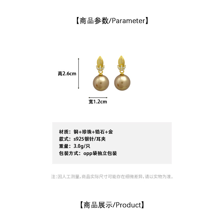 Color: Champagne pearl ear clips/pair, Champagne pearl ear studs/pair, Australian white pearl ear clips/pair, Australian white pearl ear studs/pair