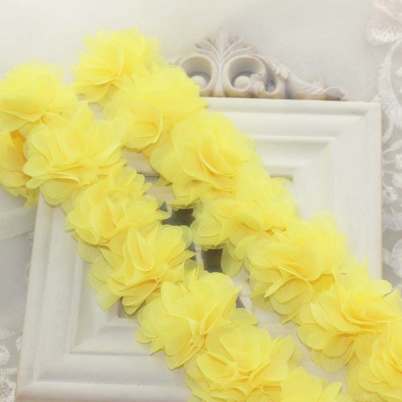Material: Chiffon Lace Craft: Weaving Scope of application: children's clothing Color: red, pink, green, sky blue, yellow, black, white, rose red, royal blue, grass green, orange size: 5 cm