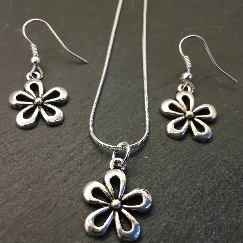 Product information: Treatment Process: Electroplating Color: earrings, necklace Applicable population: Female Pendant material: Alloy Chain style: Regular chain Material: Alloy Shape: Flower Popular elements: flowers, petals Style: European and American Perimeter: 41cm (inclusive)-50cm (inclusive)