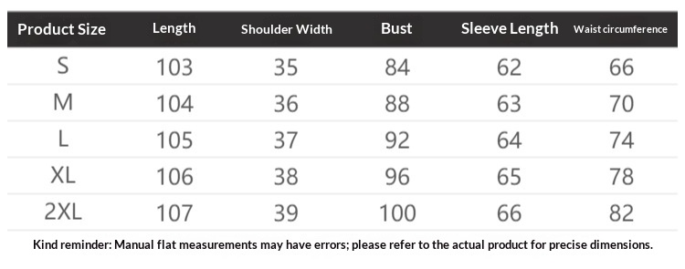 1. Asian sizes are 1 to 2 sizes smaller than European and American people. Choose the larger size if your size between two sizes. Please allow 2-3cm differences due to manual measurement. 2. Please check the size chart carefully before you buy the item, if you don't know how to choose size, please contact our customer service. 3.As you know, the different computers display colors differently, the color of the actual item may vary slightly from the following images.