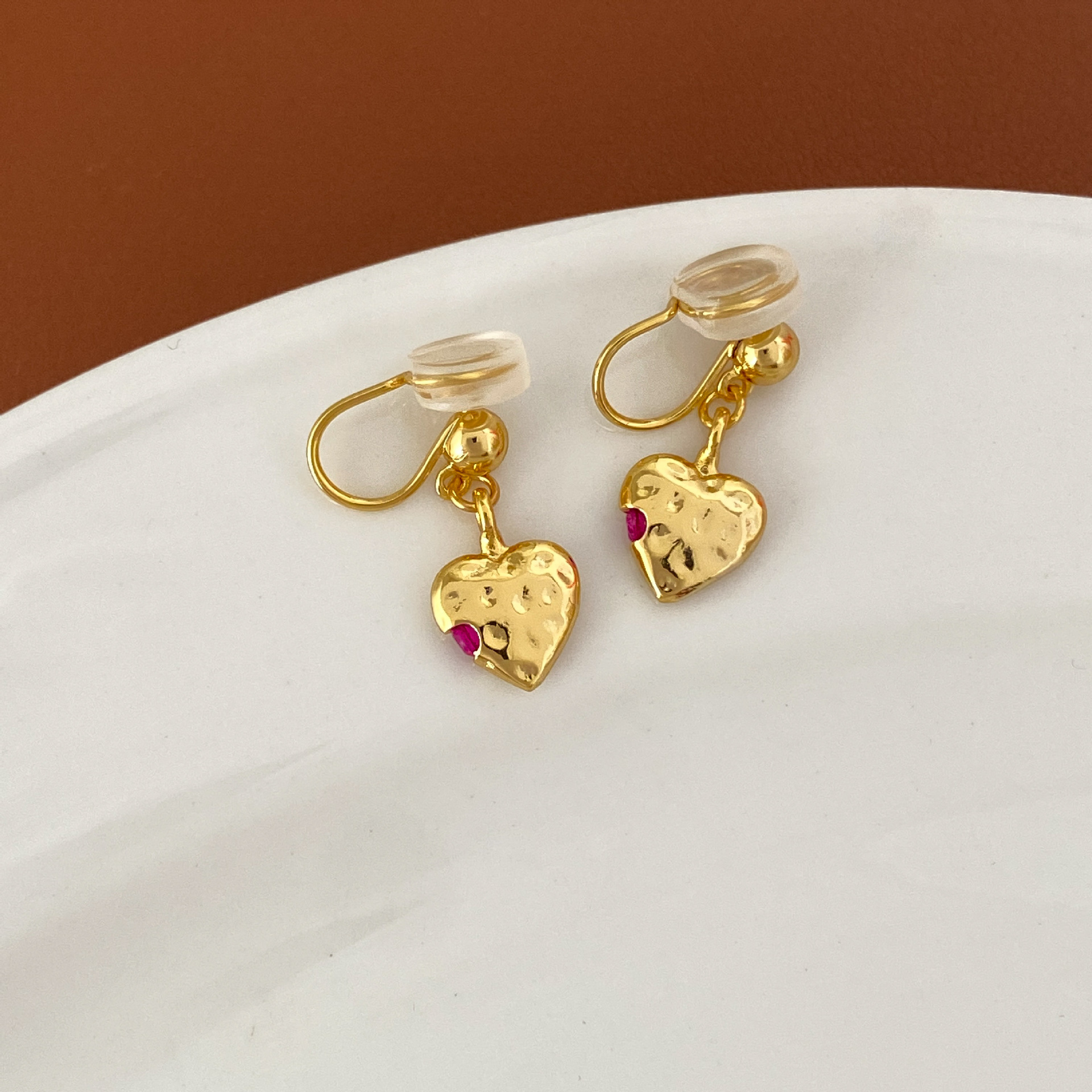 Product information: Processing technology: electroplating Color: ear clips/pair, ear studs/pair Applicable people: women Style: women Material: copper Shape: heart-shaped Popular elements: love/heart-shaped Style: simple