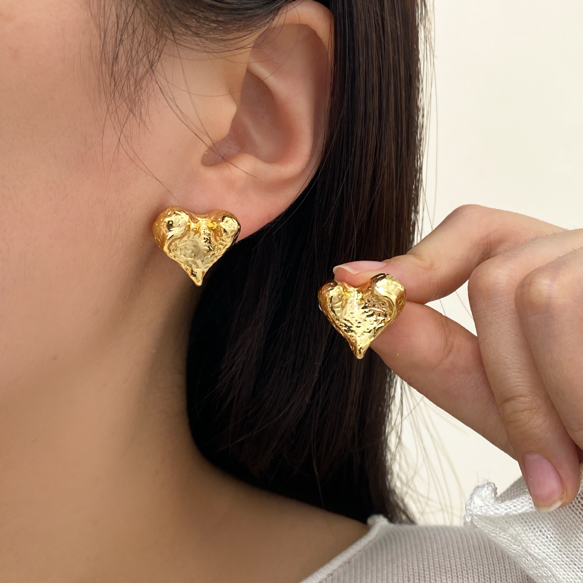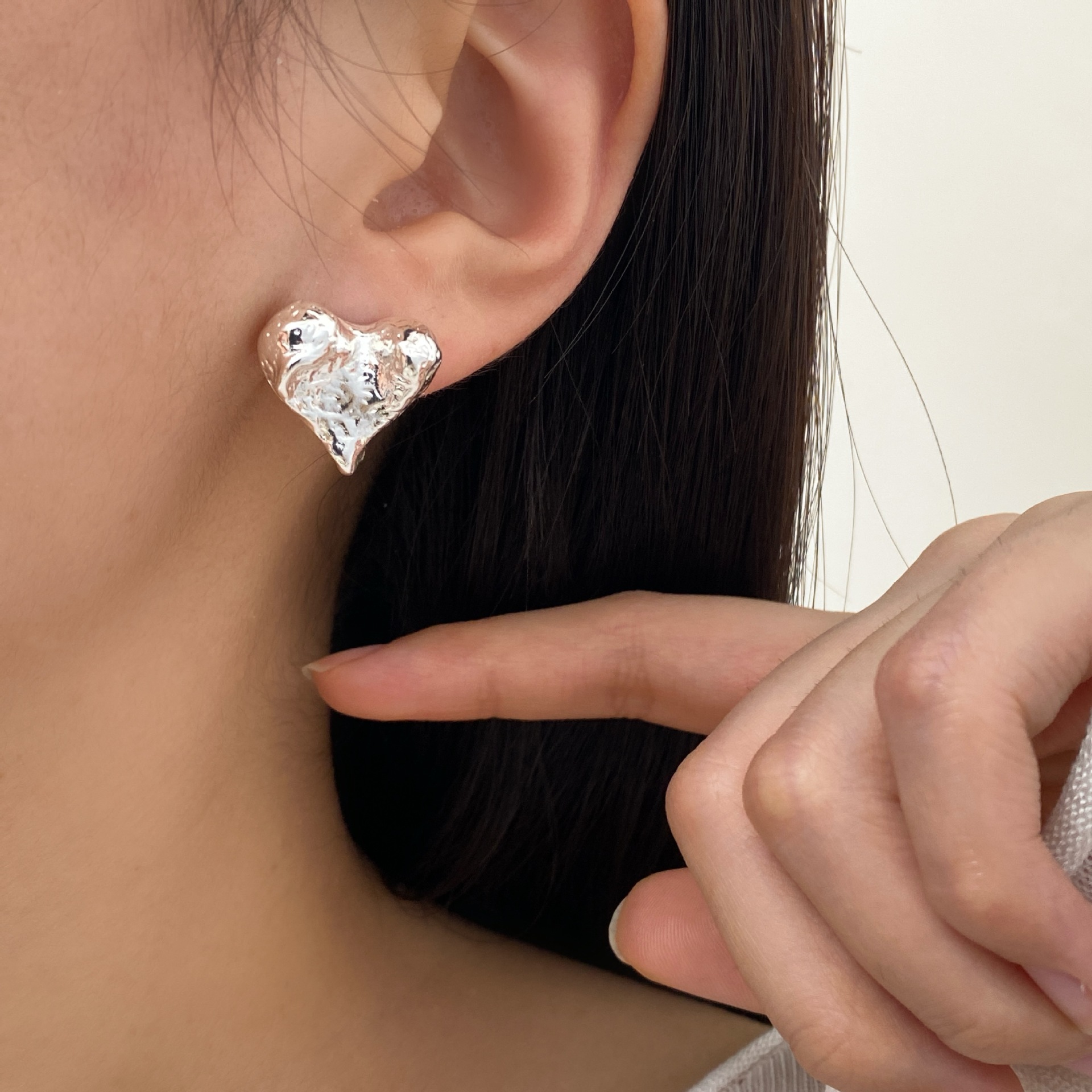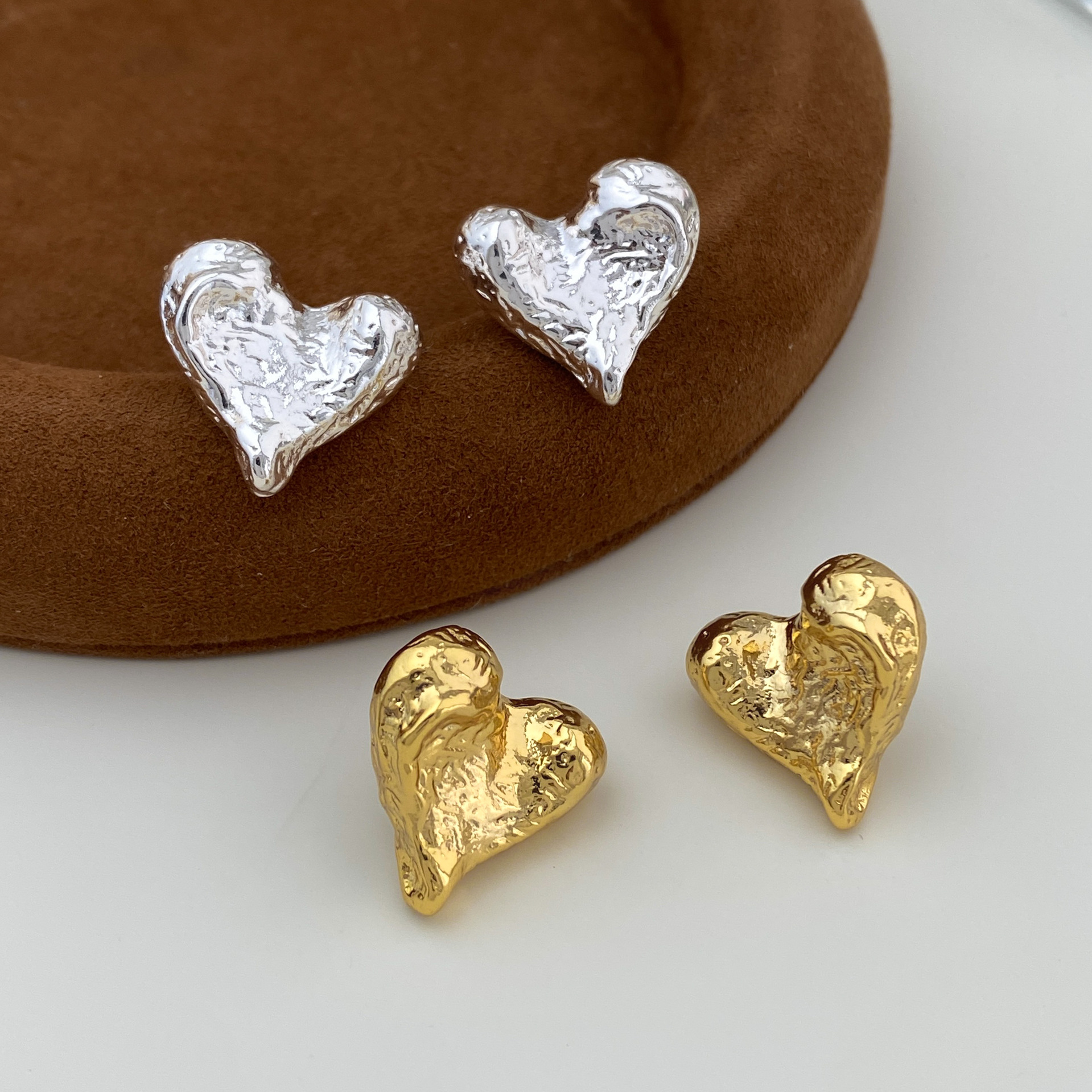 Product information: Processing technology: Electroplating Color: Gold ear clips/pair, Gold stud earrings/pair, Silver ear clips/pair, Silver stud earrings/pair Style: Women's Material: Copper Shape: Heart-shaped Popular elements: Heart Style: Minimalist