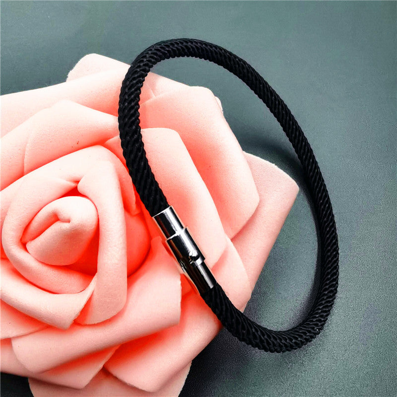 Product information: Type: Bracelet Color: 4MM Black, 4MM Red, 4MM Coffee, 4MM White, 4MM Navy Blue, 4MM Dark Green Style: Unisex Material: Nylon Length: 20CM