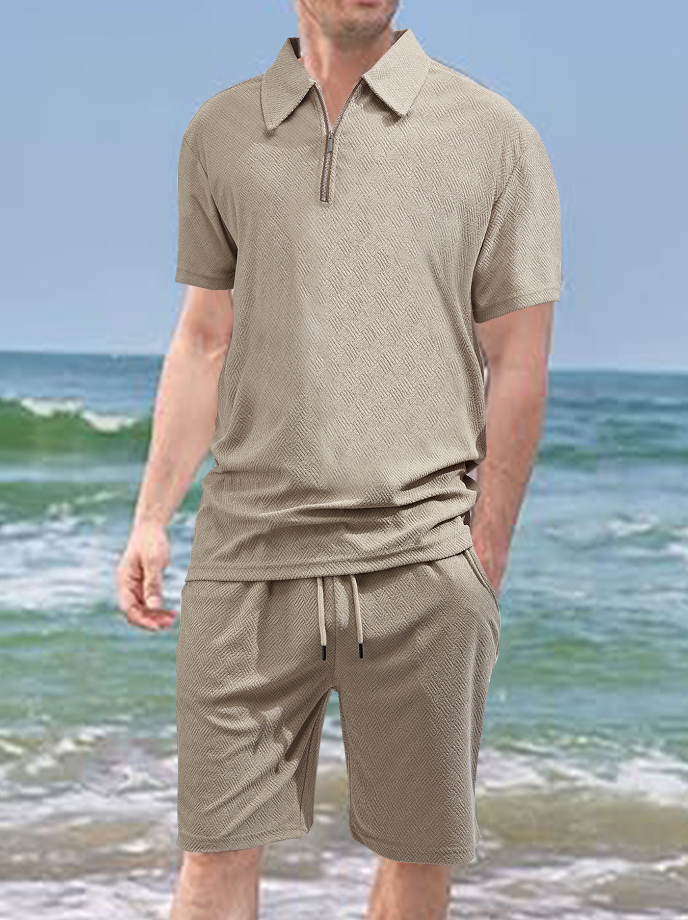 New Casual Loose Zippered Front Men's Short Sleeve