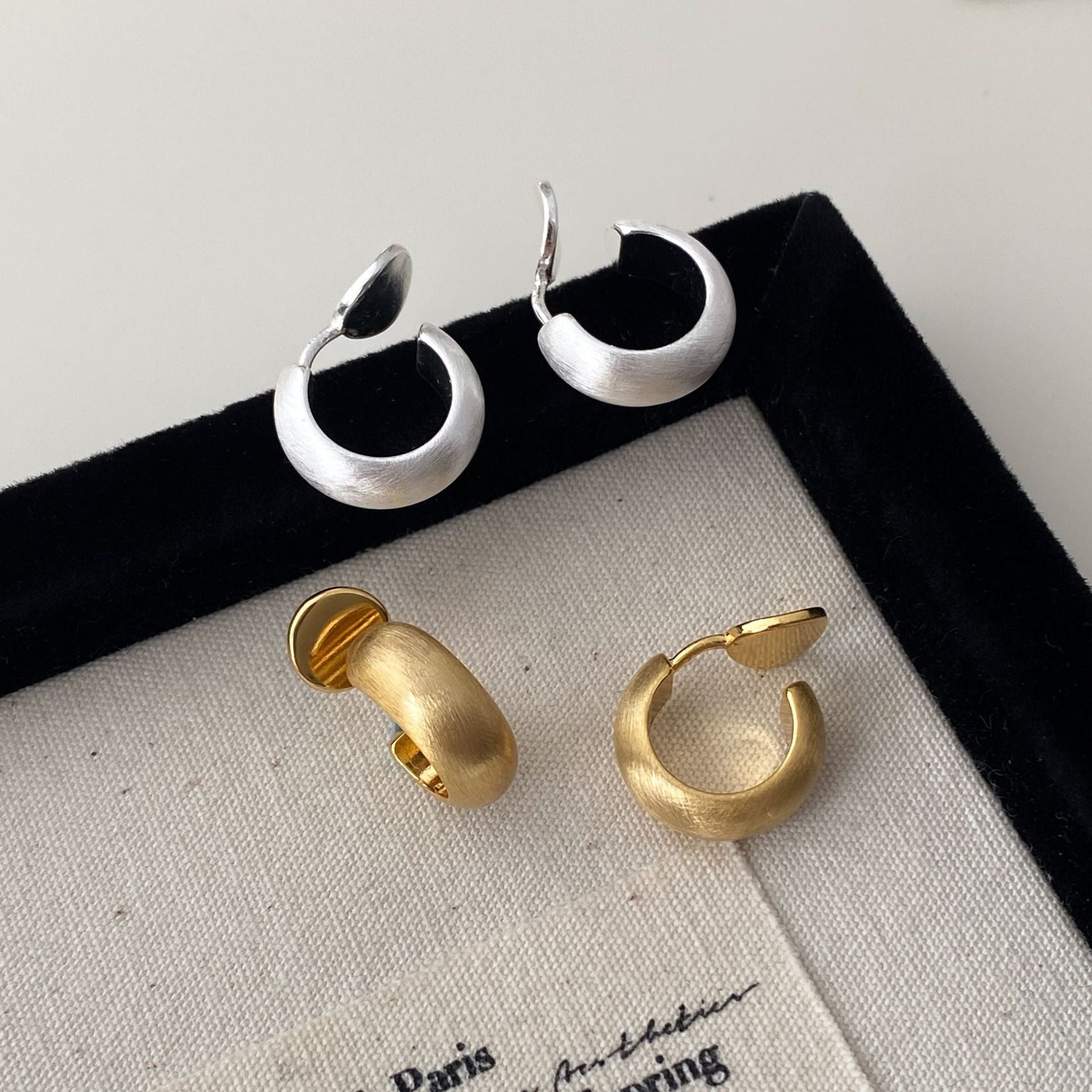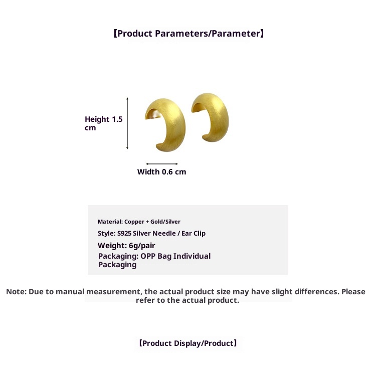 Product information: Processing technology: Wire drawing Color: Gold ear clips/pair, Gold ear studs/pair, Silver ear clips/pair, Silver ear studs/pair Applicable people: Women Style: Feminine Material: Copper Shape: Geometric Style: Minimalist