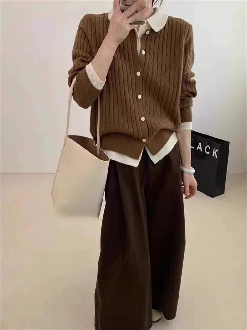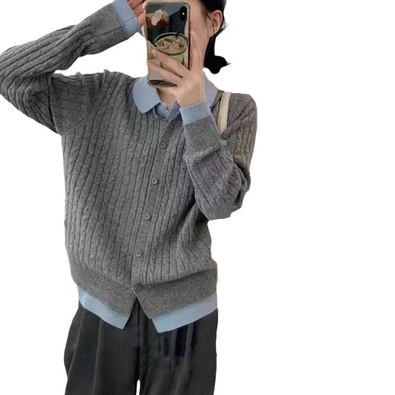 Patchwork Lapel Fake Two-piece Knitted Cardigan Women