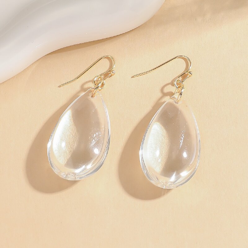Product information: Color: Transparent Applicable people: Women Material: Glass/Crystal Shape: Teardrop Popular elements: Irregular Style: Minimalist