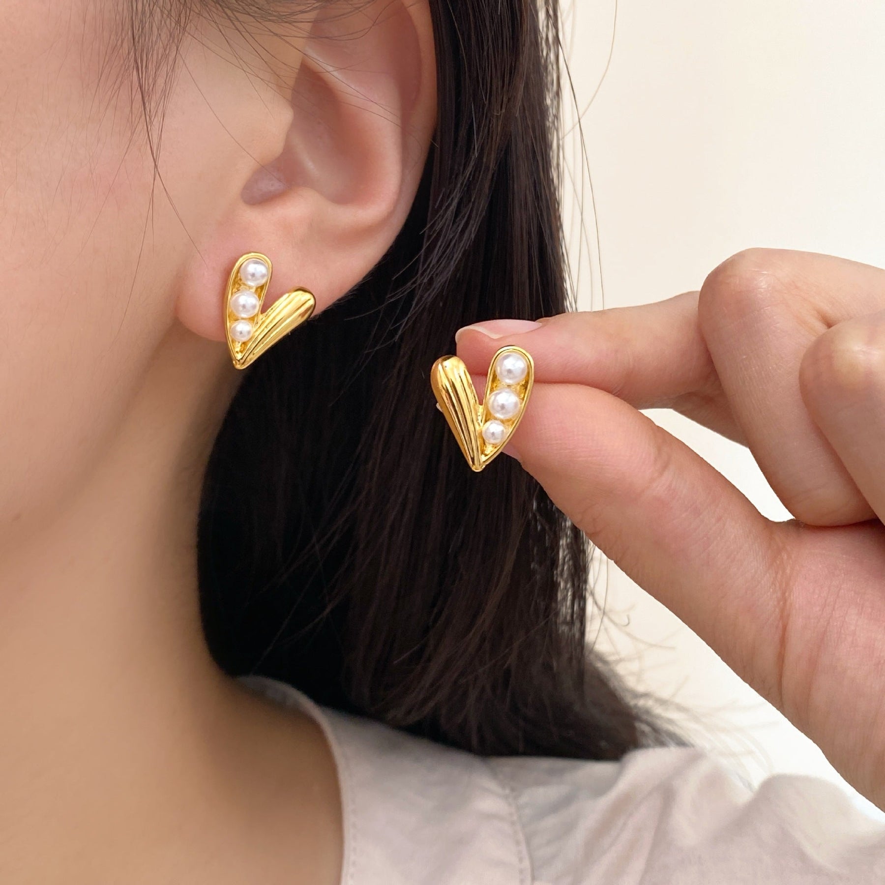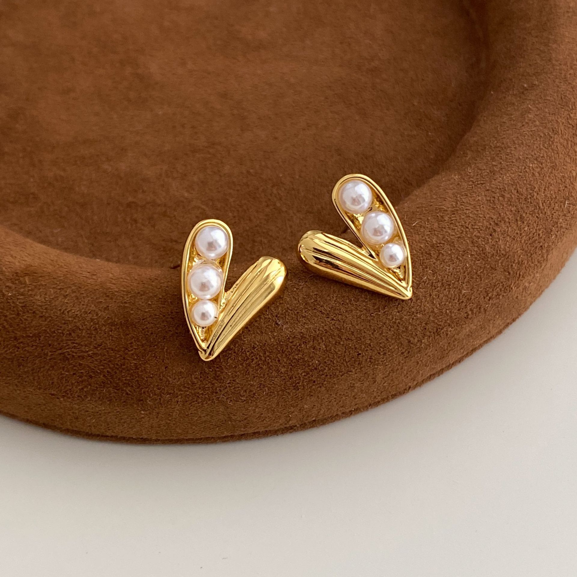 Product information: Processing technology: electroplating Color: ear clips/pair, ear studs/pair Applicable people: women Style: women Material: copper Shape: heart-shaped Popular elements: love/heart-shaped Style: simple