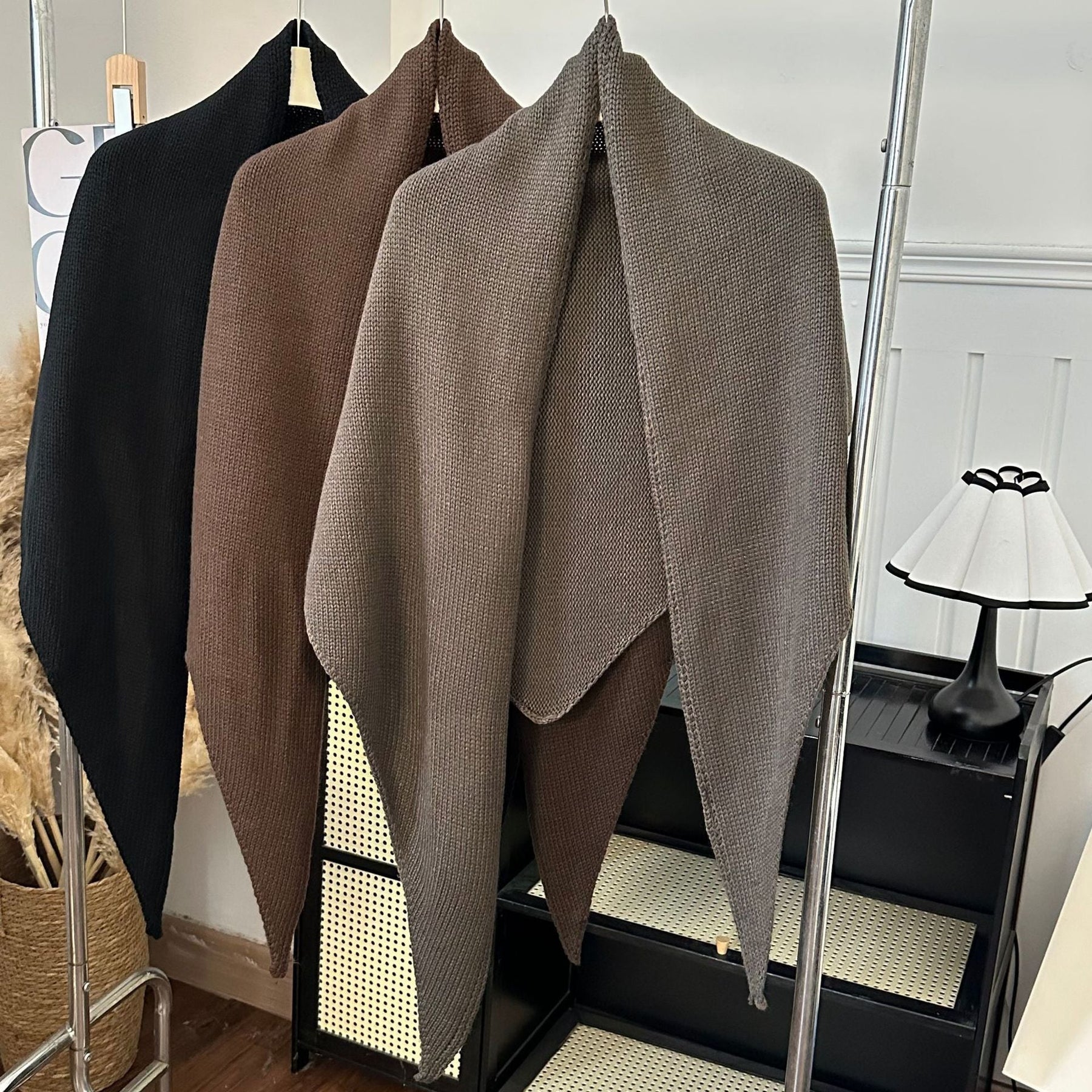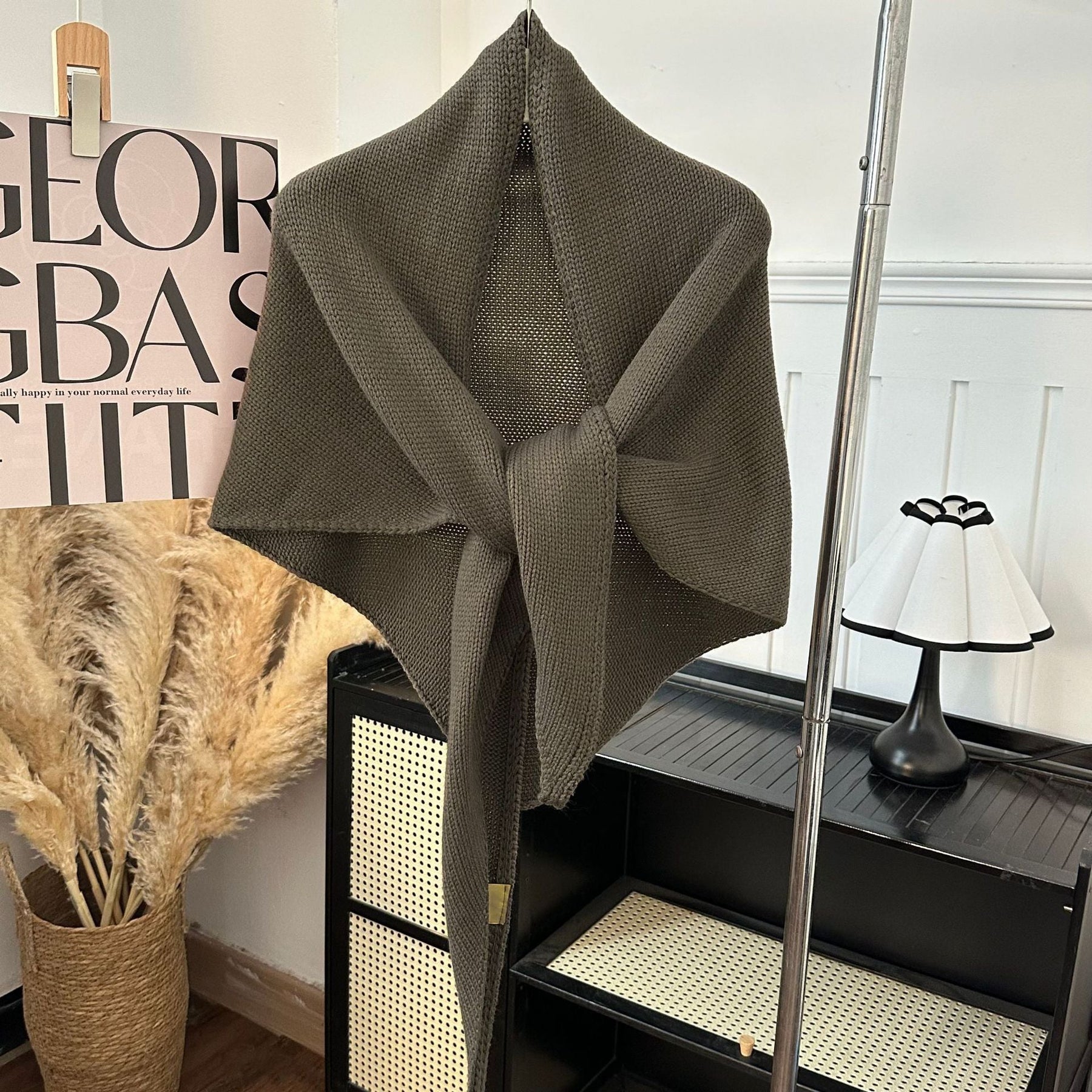 Product information: Pattern: Solid color Color: Navy blue, olive green, black, taupe, burgundy, brown, beige Processing method: Tie-dye Applicable gender: Female Function: Warm Material: Polyester Applicable season: Summer, winter, spring, autumn Popular elements: Solid color Style: Fashion OL Width (cm): 200*120 Style: Triangle scarf