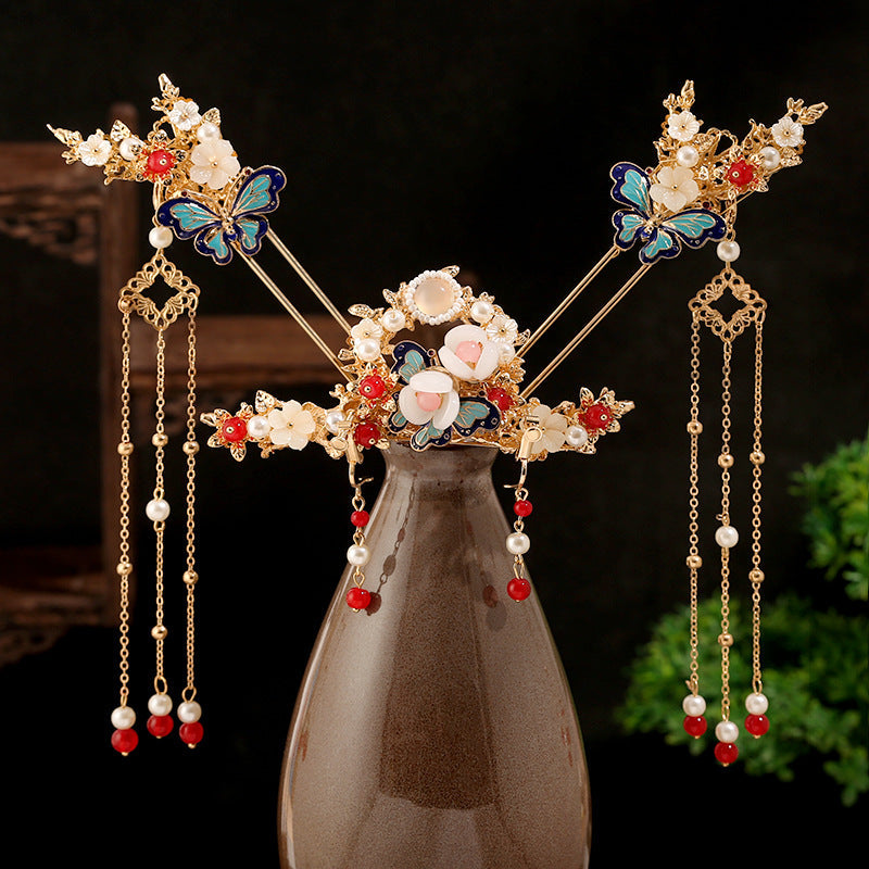Product information: Material: Glass/colored glaze Shape: Crown Popular elements: headdress for Han Chinese clothing Style: Retro