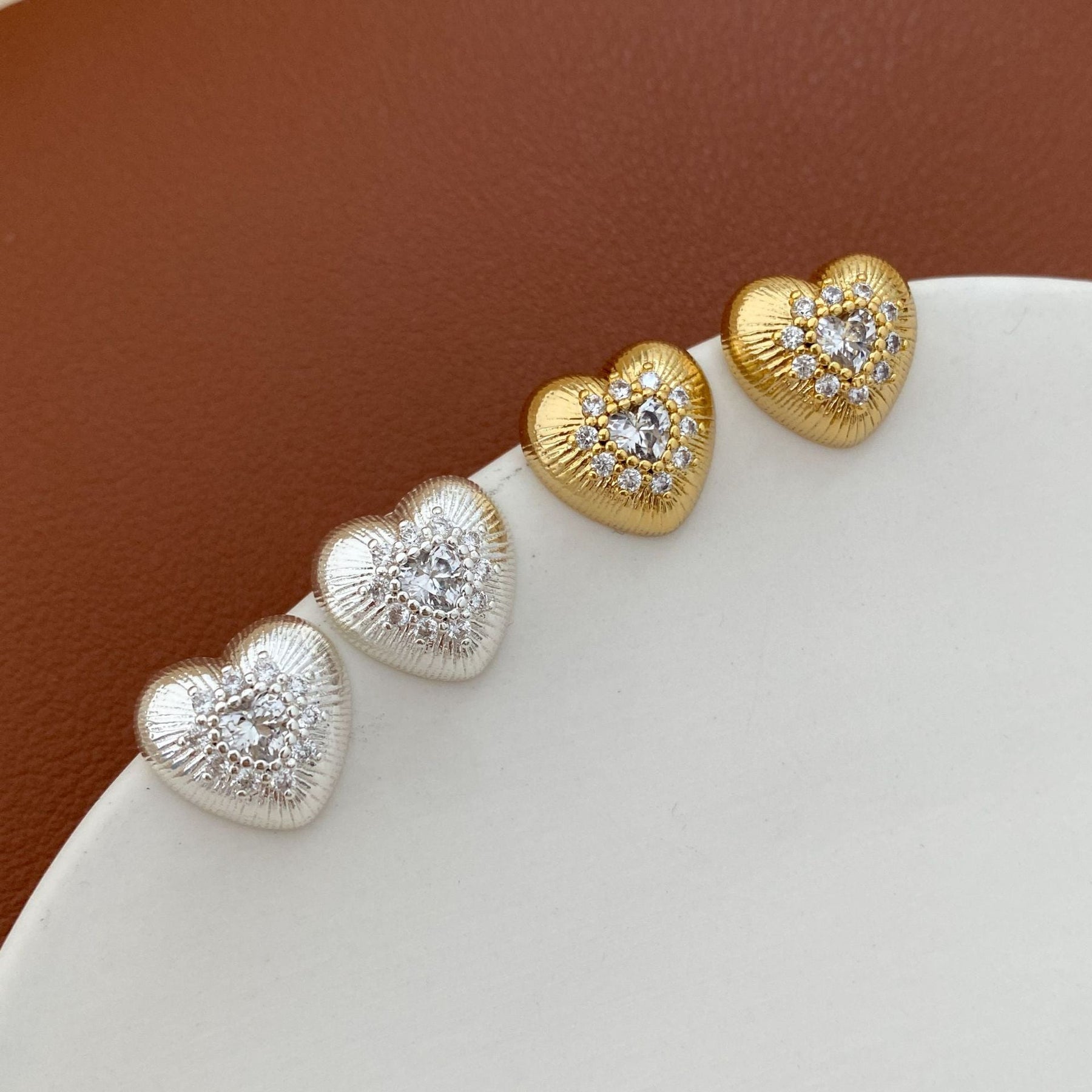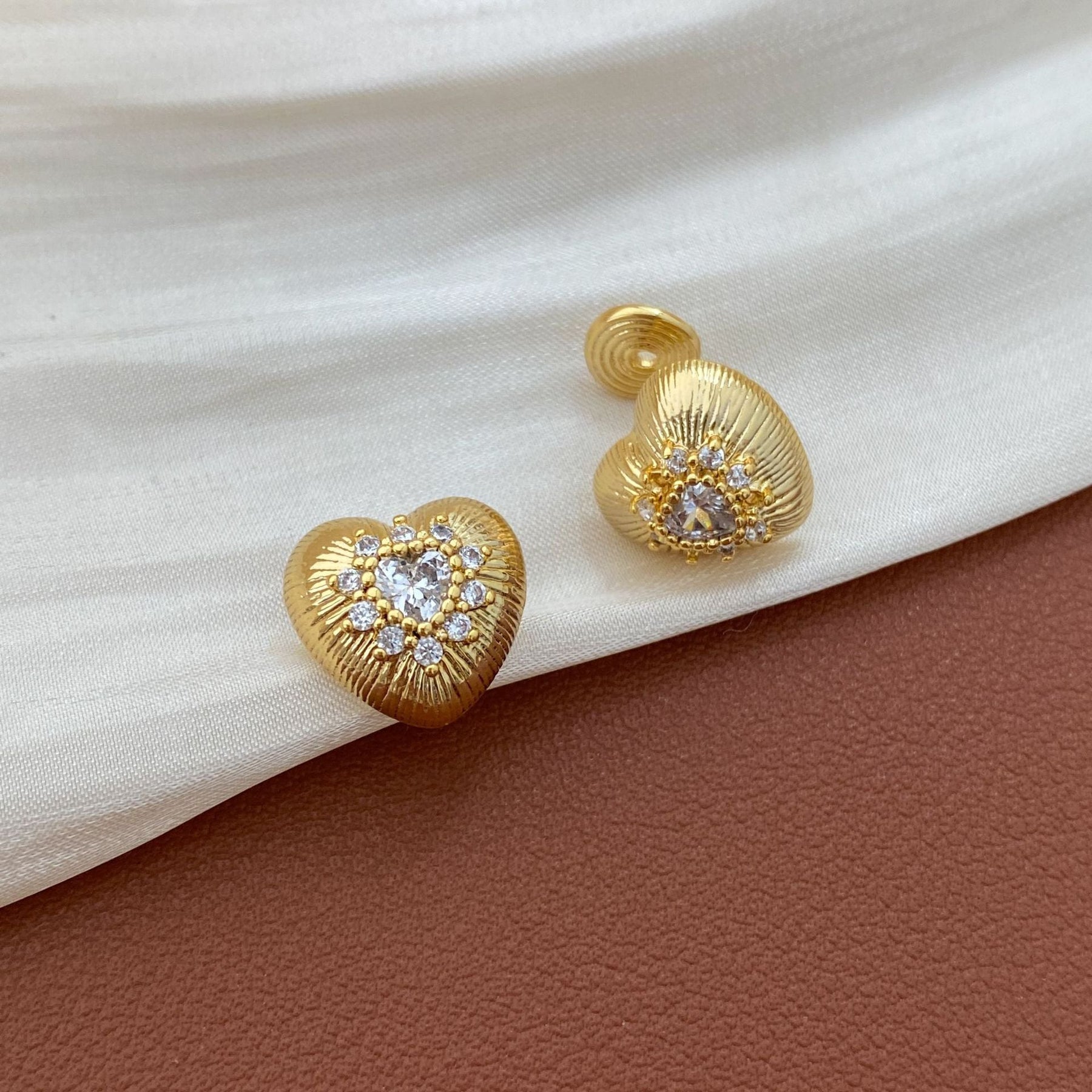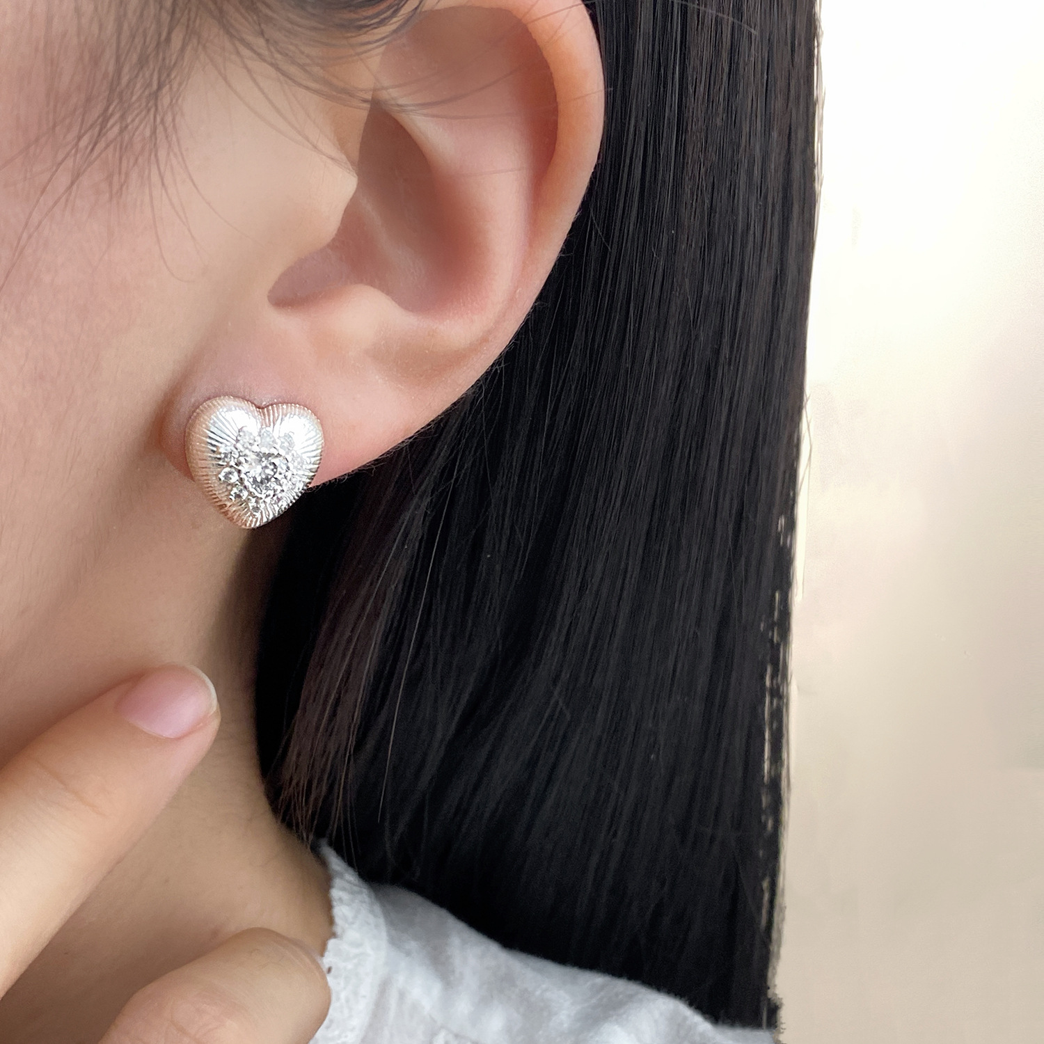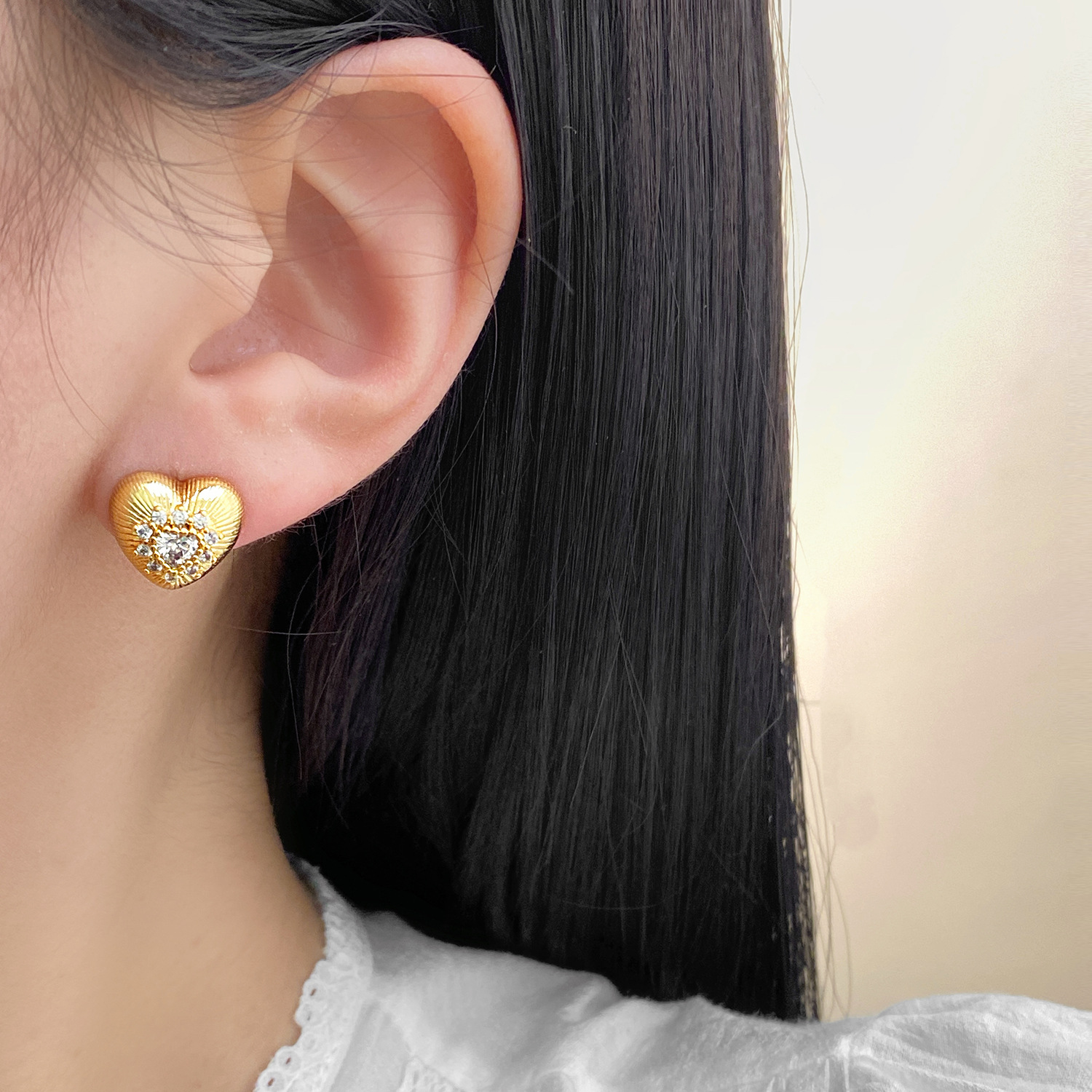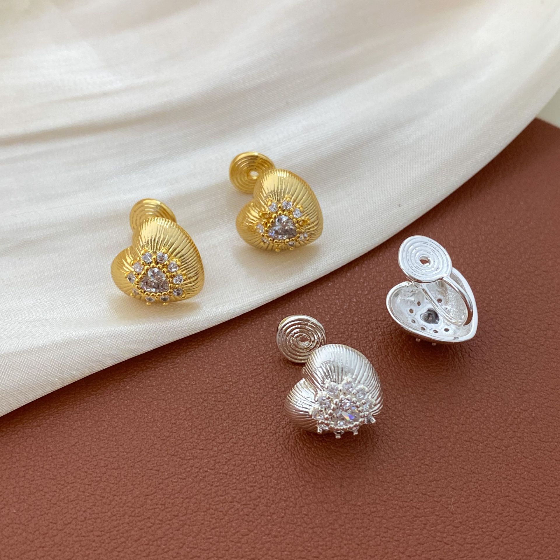 Product information: Processing technique: Inlaid zircon Color: Gold ear clips/pair, gold stud earrings/pair, silver ear clips/pair, silver stud earrings/pair Applicable group: Women Style: Feminine Material: Copper Shape: Heart-shaped, geometric Style: Minimalist