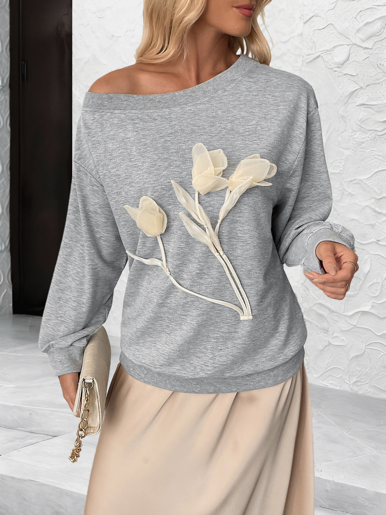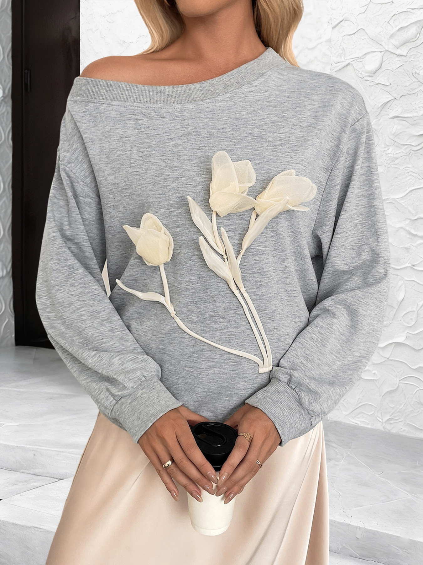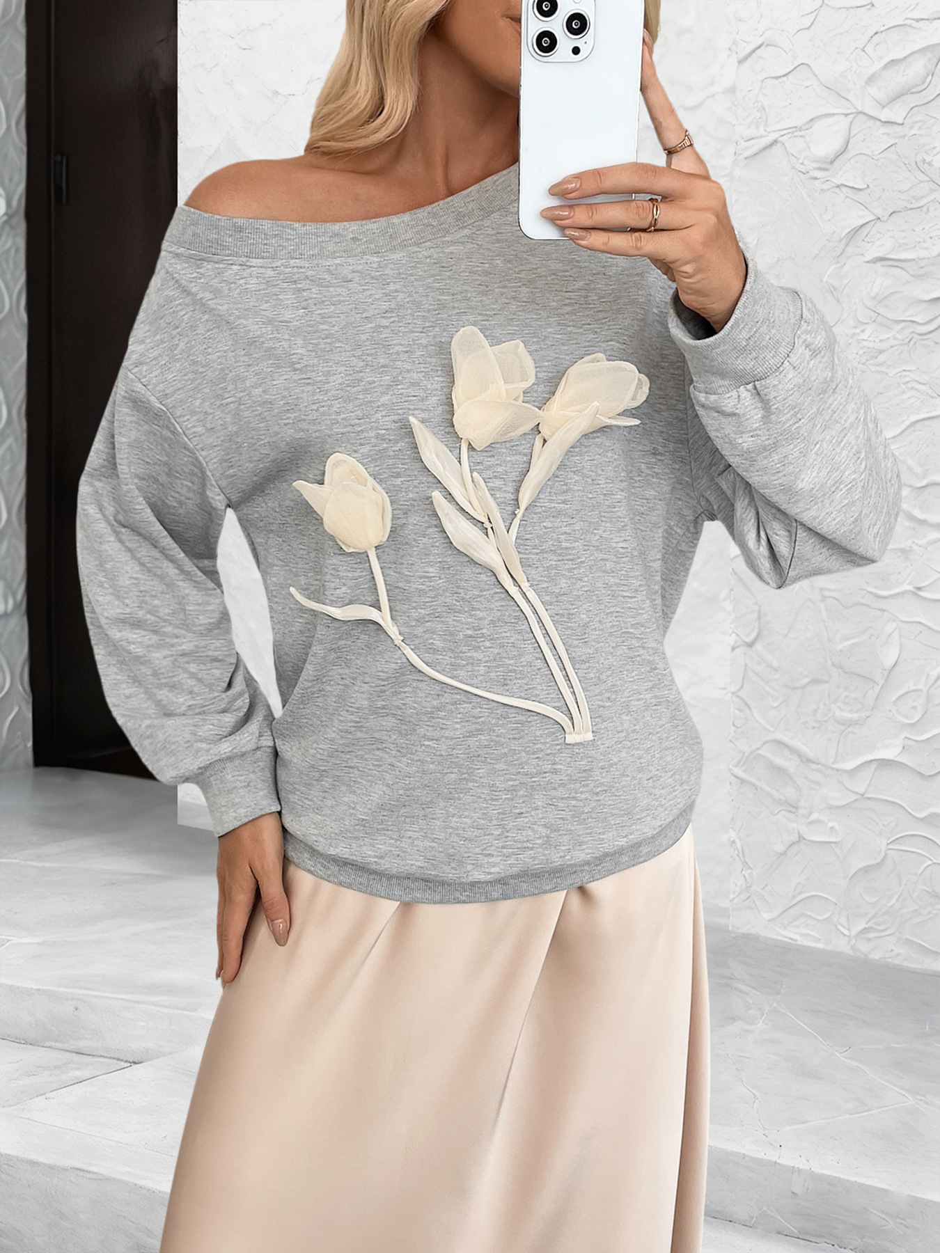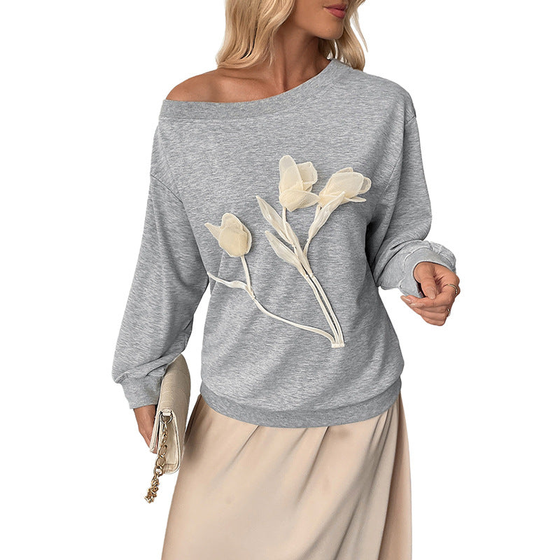 Women's Fashion 3D Flower Long Sleeve Off-Shoulder Top