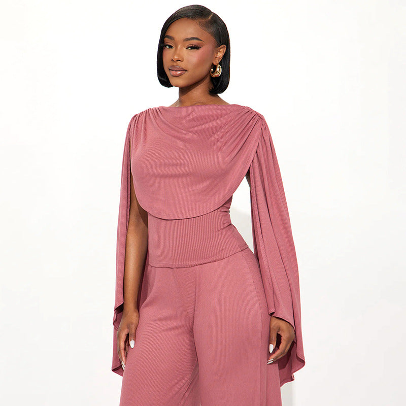 Women's Solid Color Casual Slim Swing Neck Sleeveless Top And Ribbed Pants Set