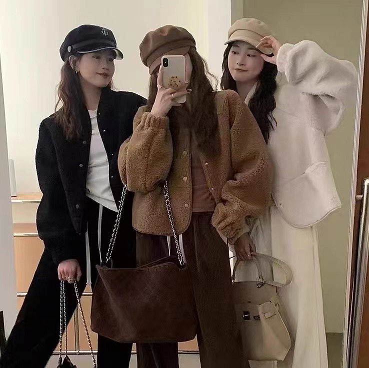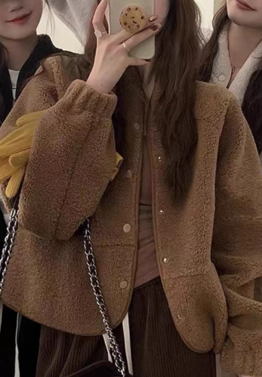 Women's Solid Color Versatile Short Lamb Fleece Jacket