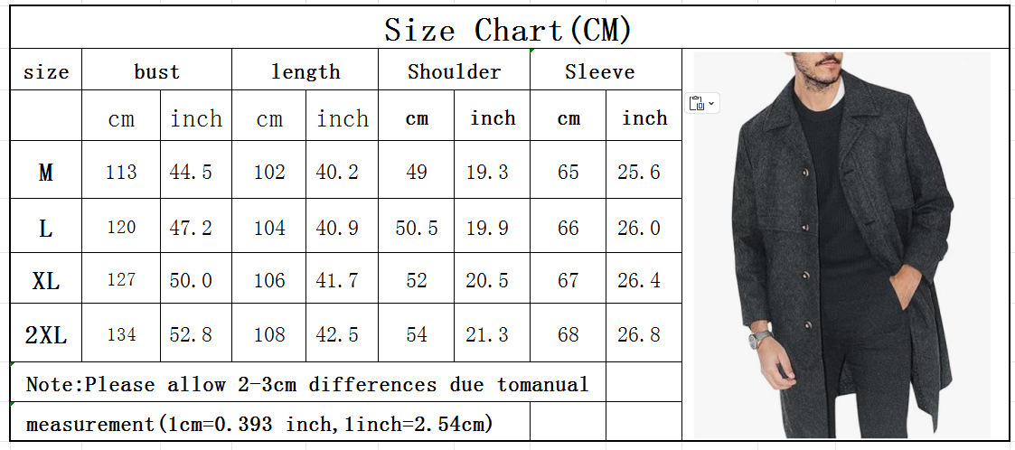 Woolen Men's Coat Plus Size Single Breasted Large Coat